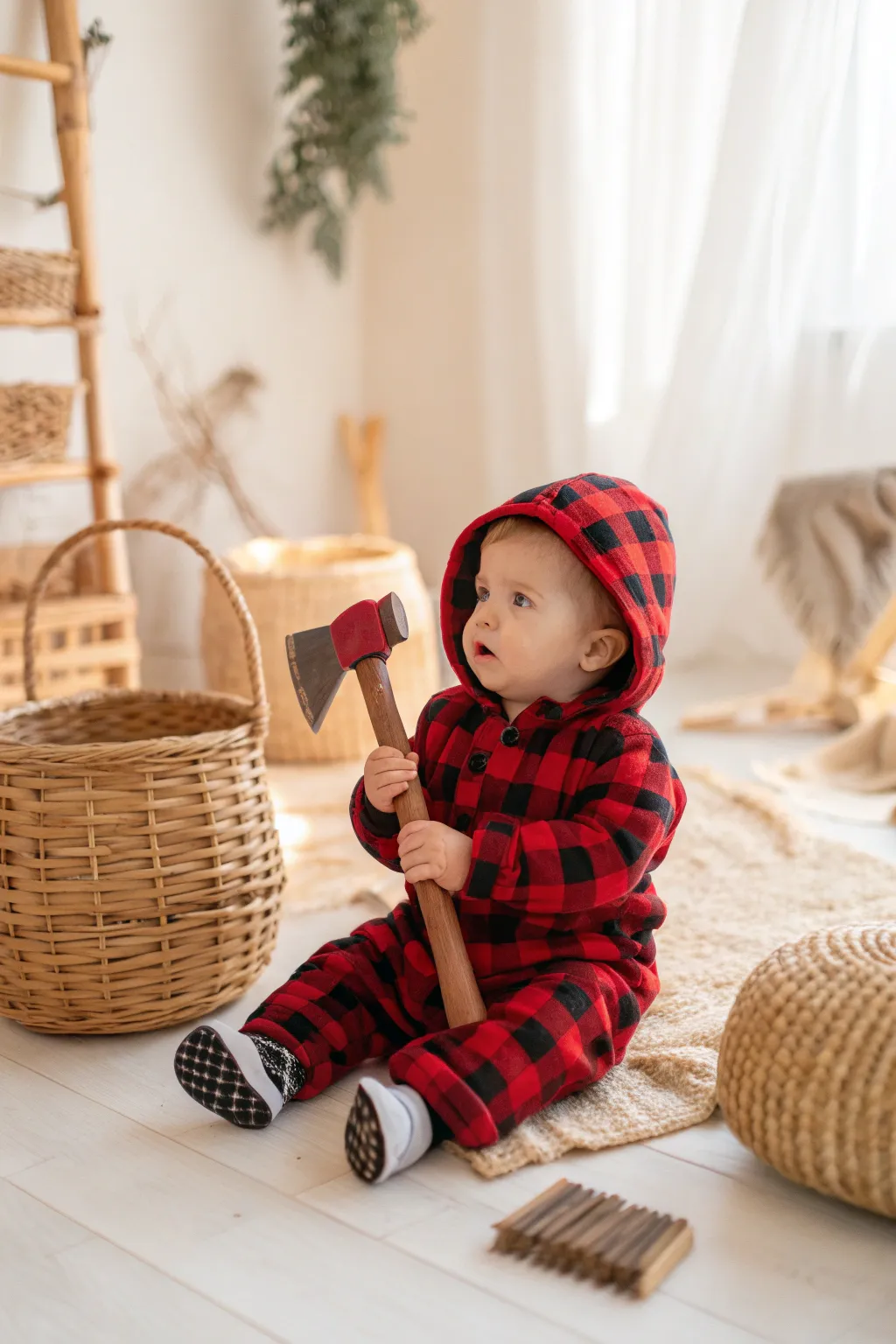 Channel rustic charm with a lumberjack costume. I dressed my nephew in a flannel onesie with a toy axe, and he was ready to chop down the competition.