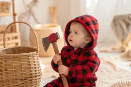 Adorn your little one as a cuddly ursine with a gentle, plush attire that’s ideal for snuggles. I utilized recycled materials for a friend’s baby, and it was as eco-conscious as it was darling.