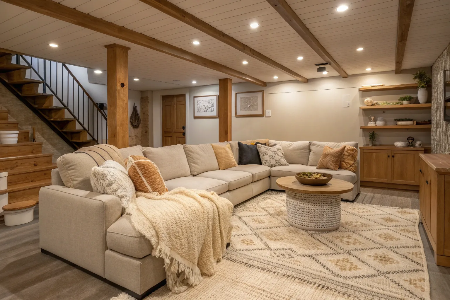 - Plush Sectional Sofa: Choose a plush sectional sofa to define your basement space and enhance cozy gatherings at home.