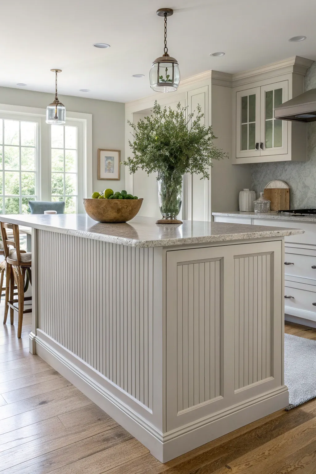 - Vertical beadboard panels: Enhance your kitchen island with these sleek, vertical beadboard panels for a modern touch.