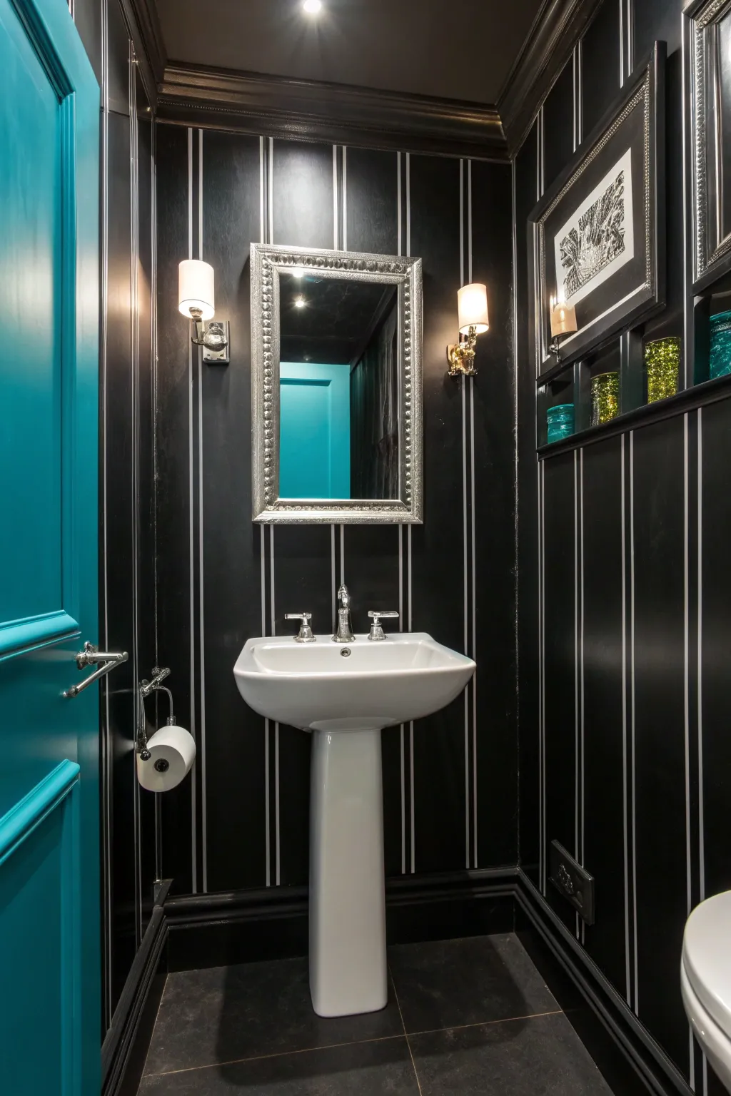 - Luxury Black Wall Paint: Transform your powder room with this chic black paint for a modern, dramatic look.