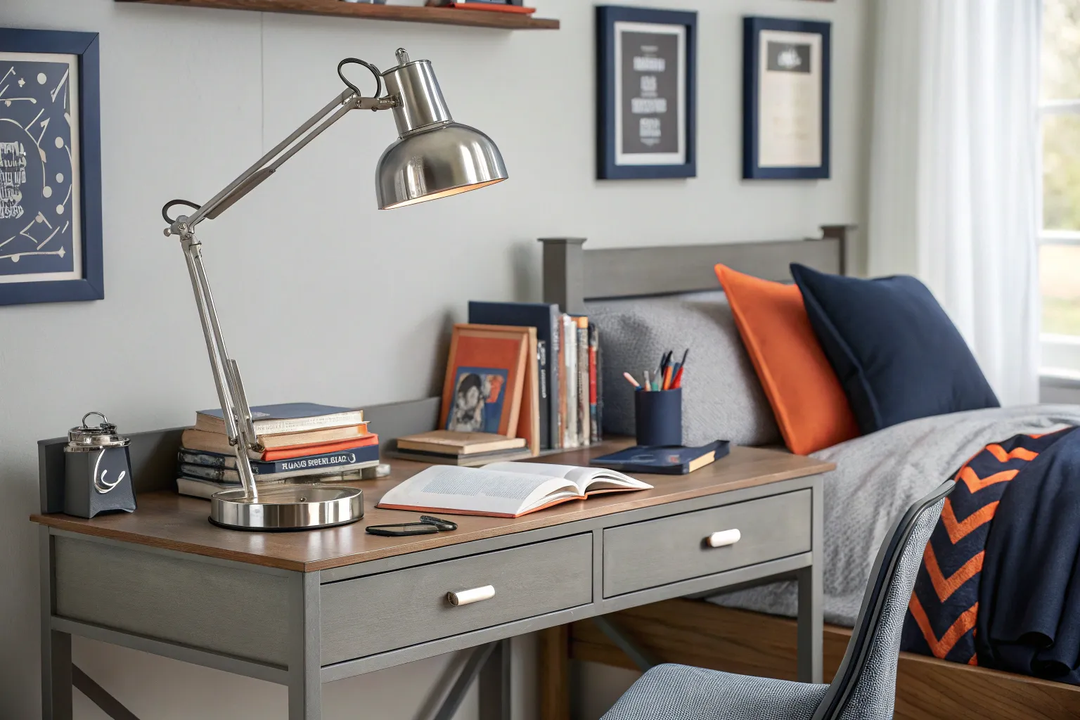 Consider a lofted bed to maximize floor space, allowing room for a desk or lounge area beneath. This setup is perfect for maintaining a functional and organized dorm room.