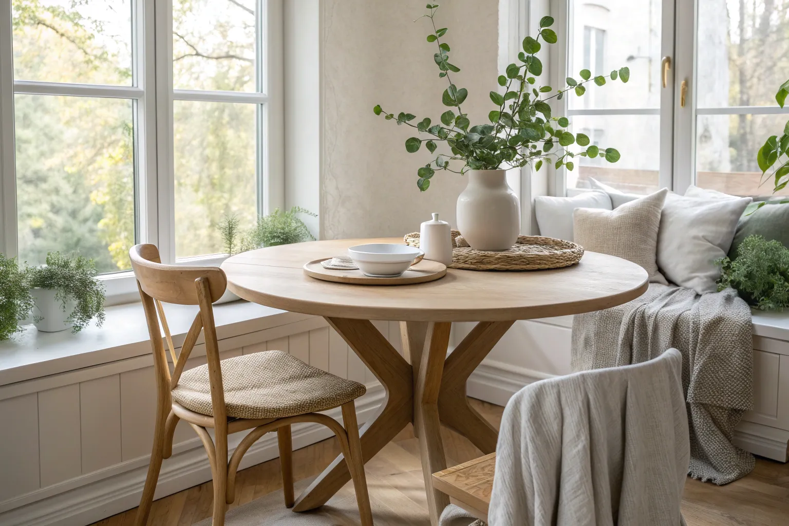 - Compact Round Dining Table: Choose a compact round table that fits snugly within your cozy breakfast nook layout.