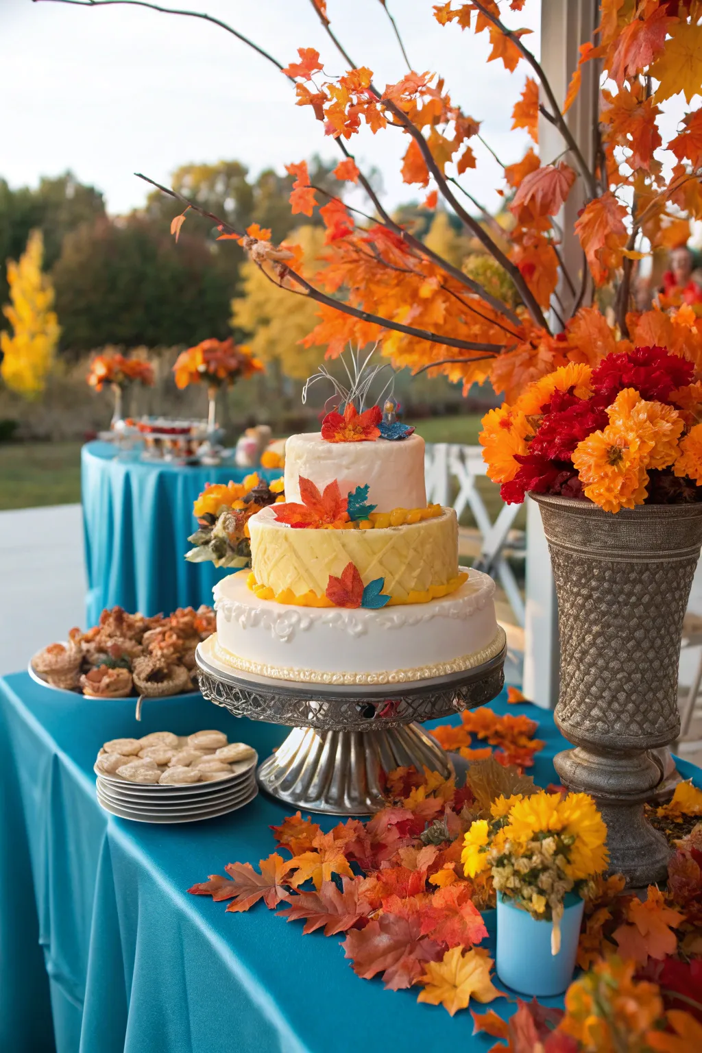 - Table Runner: Add texture and warmth with a cozy table runner, perfect for your cake table display.