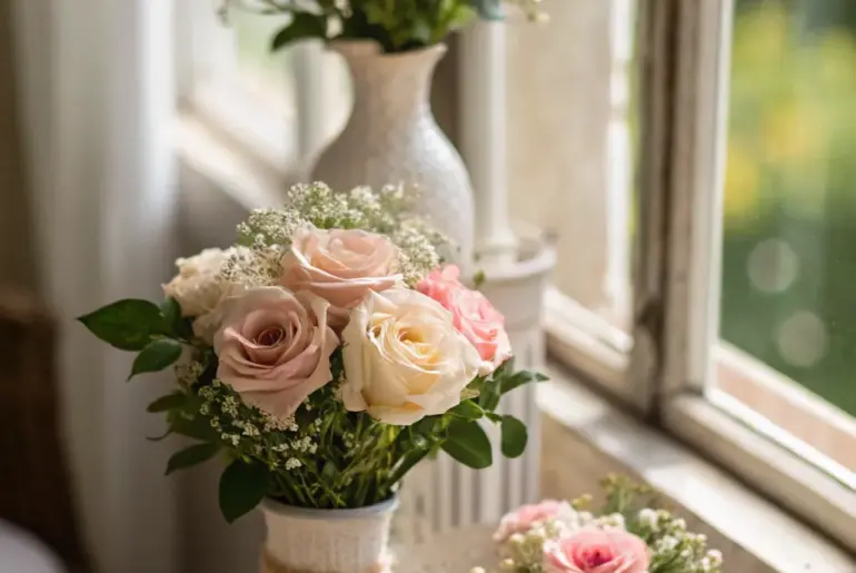 Welcome to the enchanting world of rose arrangements! Here, I’ll share some of my favorite ideas to elevate your decor with these timeless blooms. Roses as Table Centerpieces Transform your dining experience with rose centerpieces that add a touch of sophistication and natural beauty. For a dinner party, consider using roses as centerpieces, paired with elegant tableware. Adding some greenery can enhance the texture and create a stunning visual contrast. You might like: Glass Vase…