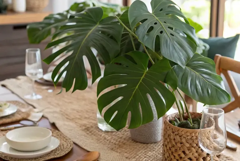 Creating a tropical oasis on your dining table doesn’t have to be complicated or expensive. Let’s explore some simple yet stunning ideas to bring the vibrant beauty of the tropics right into your home. Palm Leaf Base Palm leaves set the stage for a lush and inviting centerpiece. Lay down a few palm leaves as a base for your centerpiece. They provide a lush backdrop that feels effortlessly tropical. Maybe worth checking out: Artificial Palm…