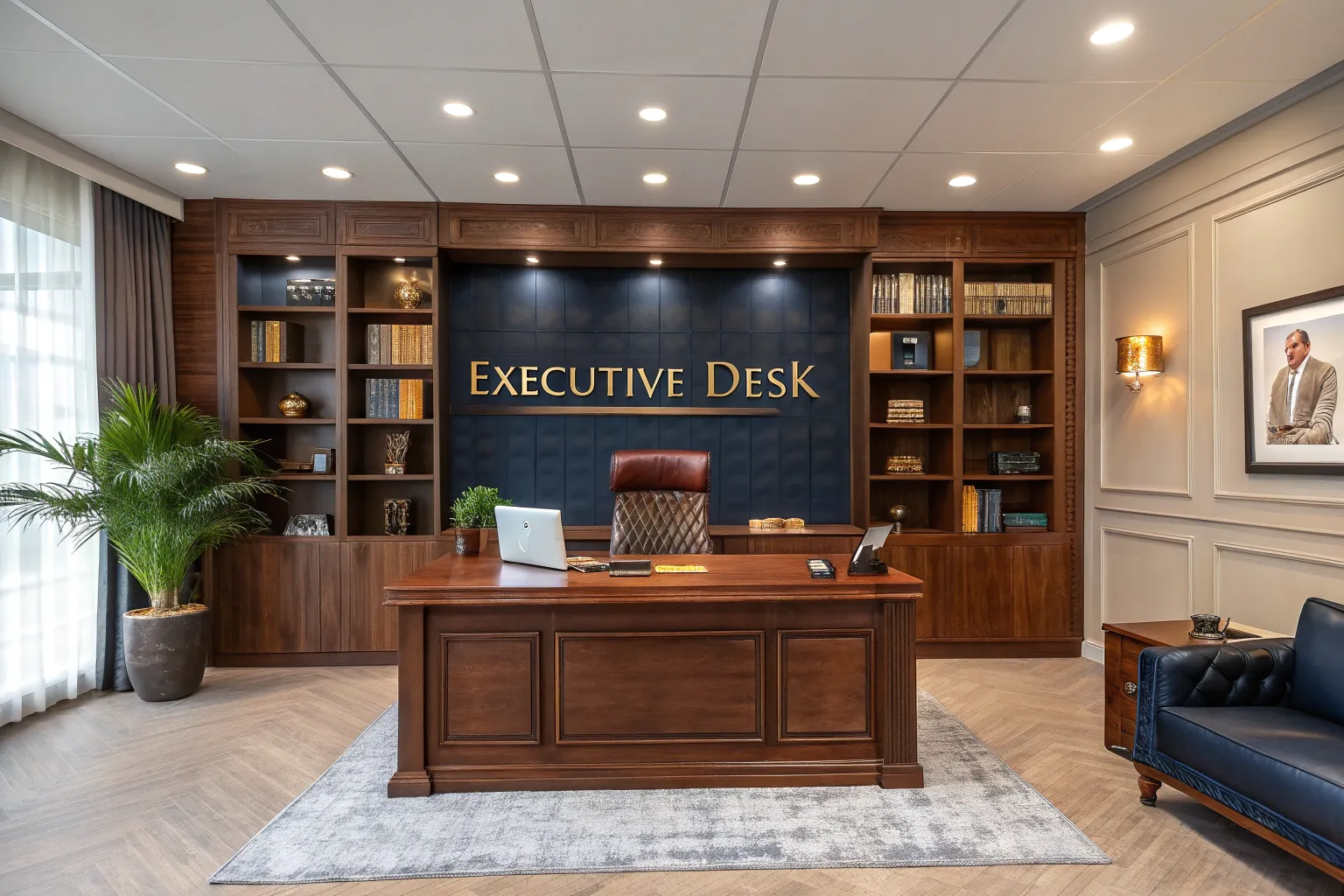 - Modern Executive Desk: Enhance your workspace with a sleek executive desk that promotes clarity and organization.
