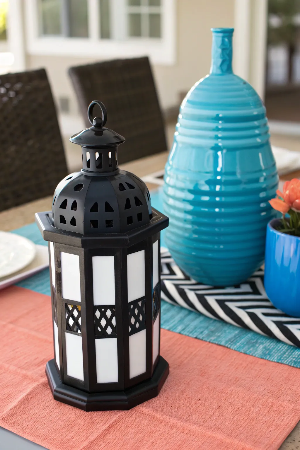 • Colorful Ceramic Lantern with Geometric Patterns: Add a splash of color and charm to your space with this playful lantern design.