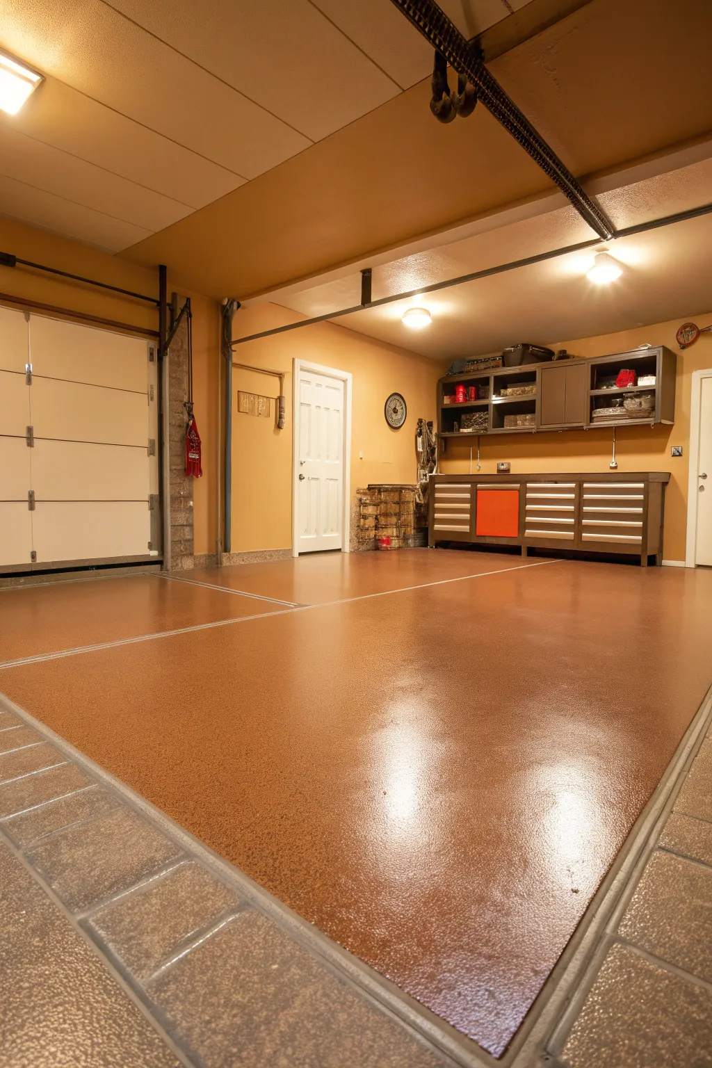 Add a urethane sealer on top of your flooring for a protective, glossy finish. It’s been my go-to for ensuring my garage floor stays stain-free and shiny.