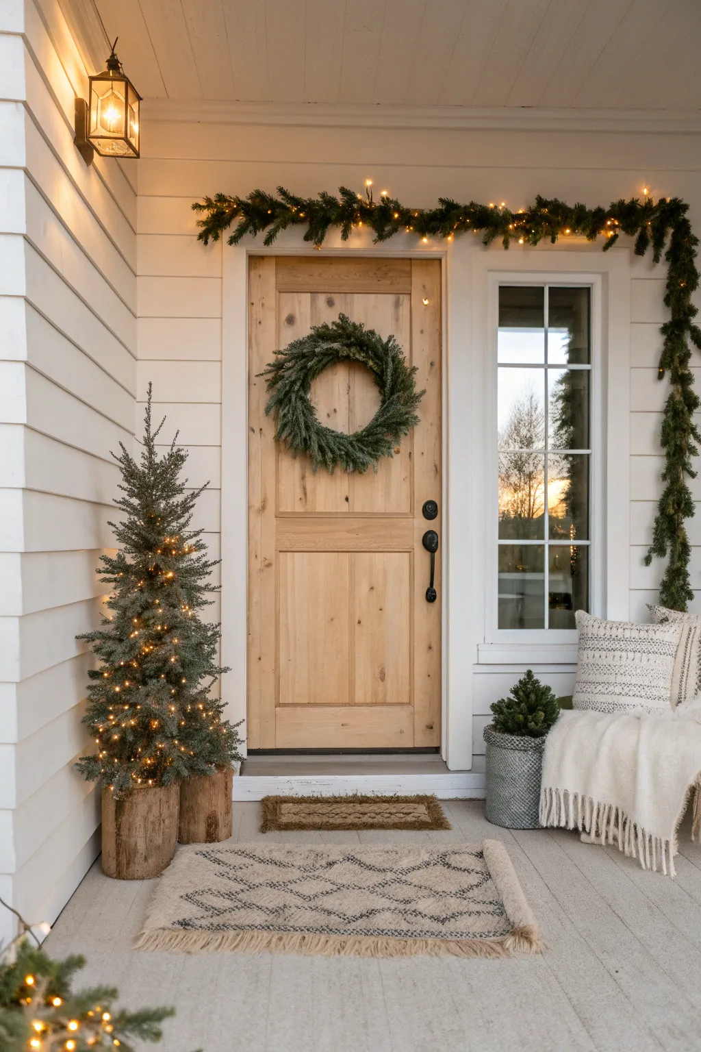 - Garland with Lights: Enhance your entrance with a lighted garland for a festive and inviting glow.