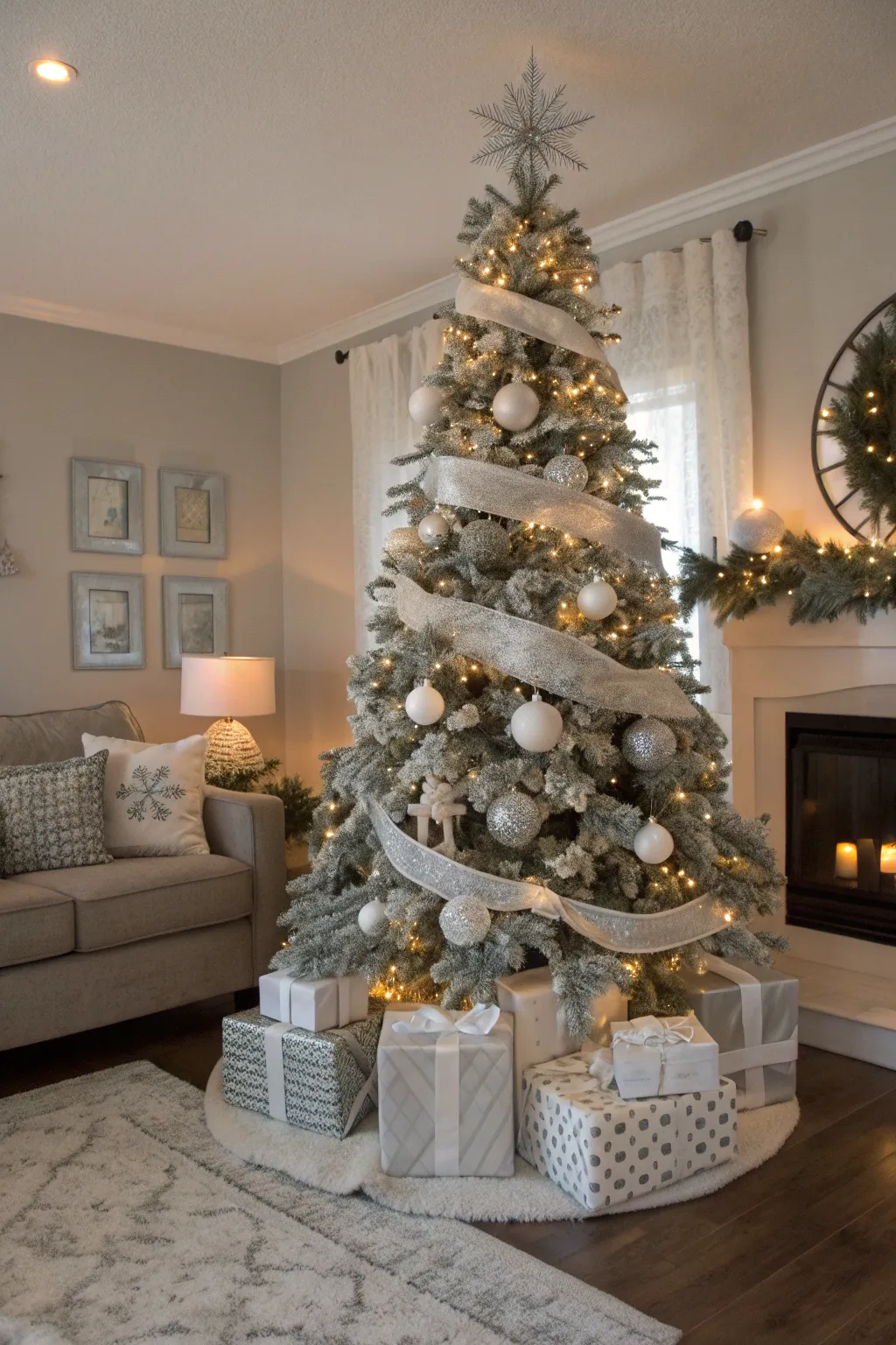 • Silver and White Ornament Set: Enhance your tree with elegant silver and white ornaments for a stunning snowy effect.
