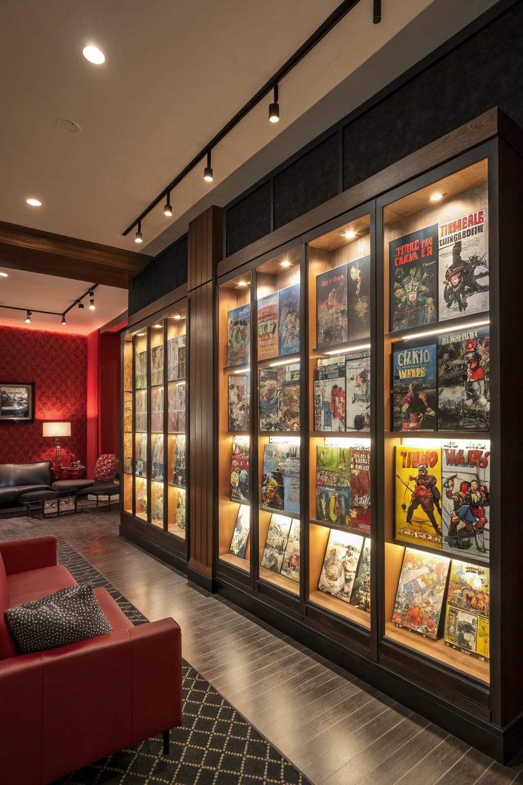 Add a modern touch with backlit displays that make your comic covers glow. This can transform your collection into a captivating focal point, especially during evenings.
