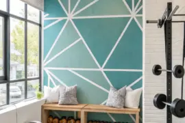 Brighten your gym with a bold accent wall. I love using vibrant colors to energize and personalize the space.