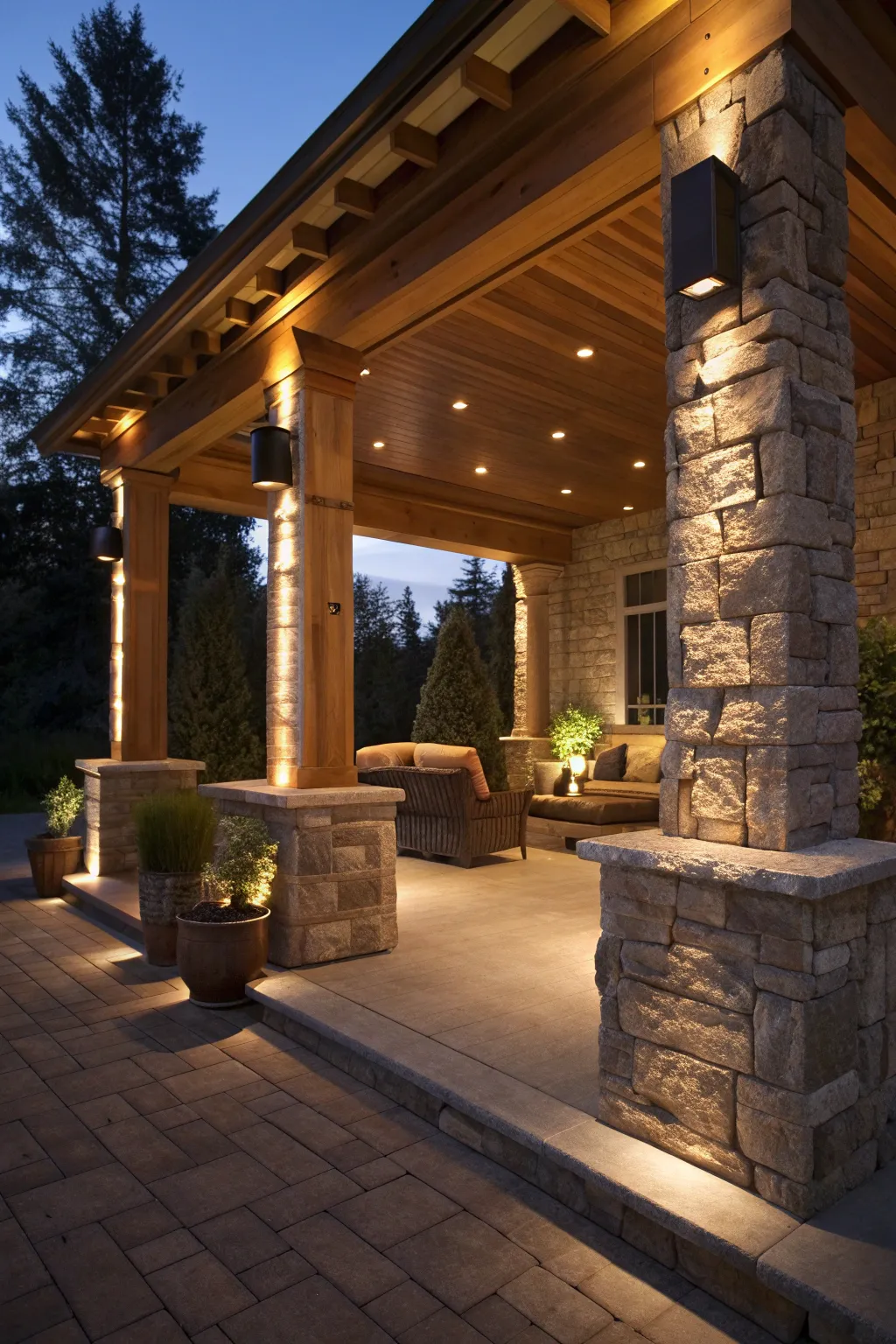 Install cove lighting under benches or planters for a subtle, hidden glow. It’s a sleek way to add light without visible fixtures.