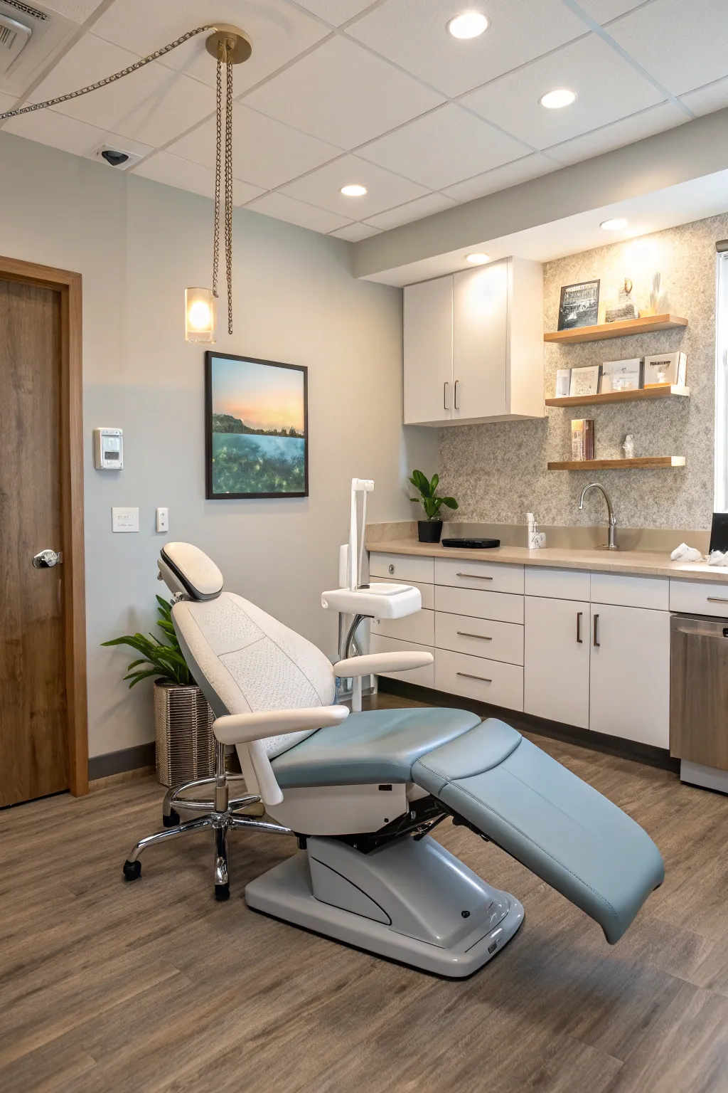 Don’t forget the ceiling! Incorporate artistic designs or calming patterns that give patients something interesting to look at during their treatments.
