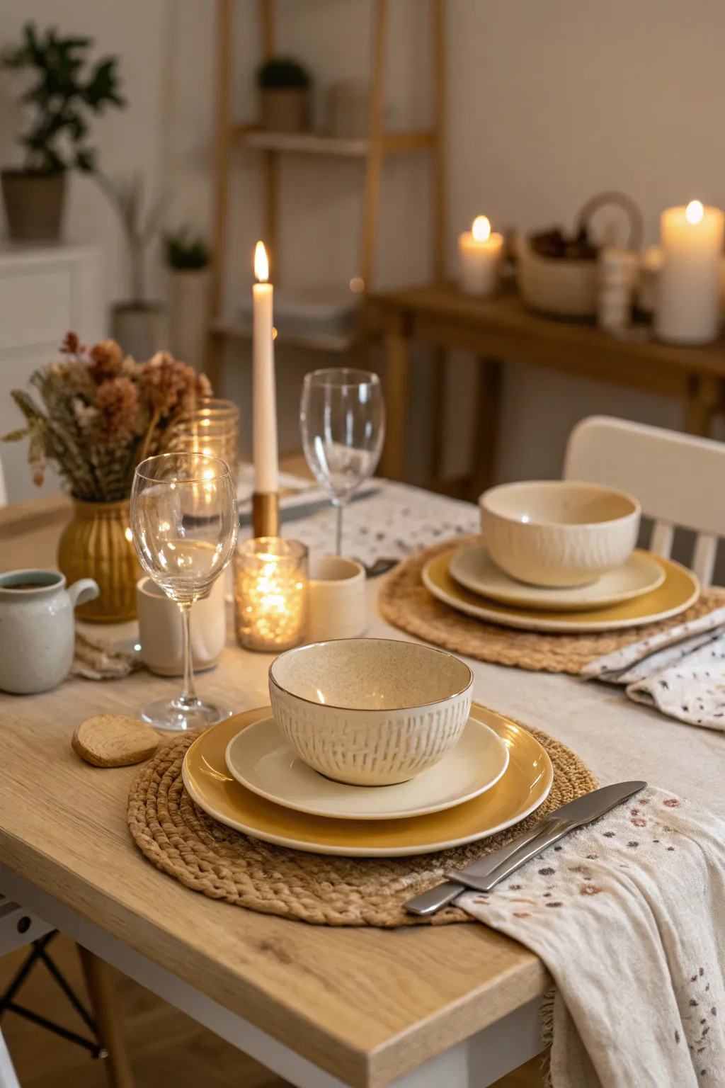 • Gold Candle Holders: Elevate your table with elegant gold candle holders perfect for creating a romantic atmosphere.