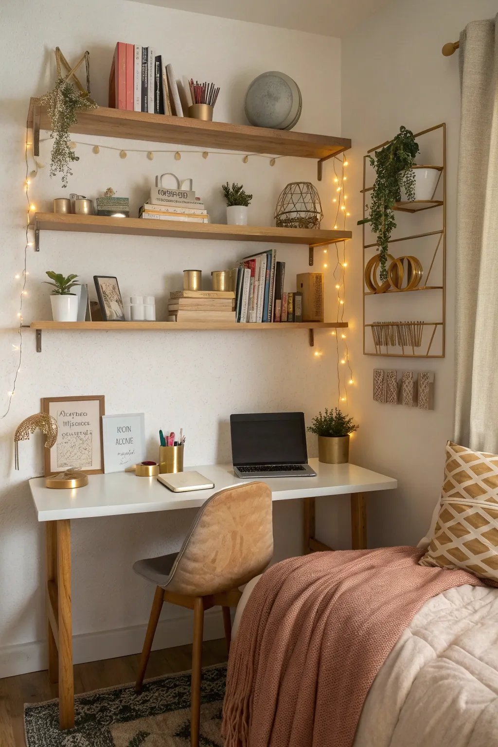 Maximize your vertical space by installing wall-mounted shelves above your desk. This creates room for books and decor without eating up precious desk real estate; a strategy I’ve used in countless small spaces.