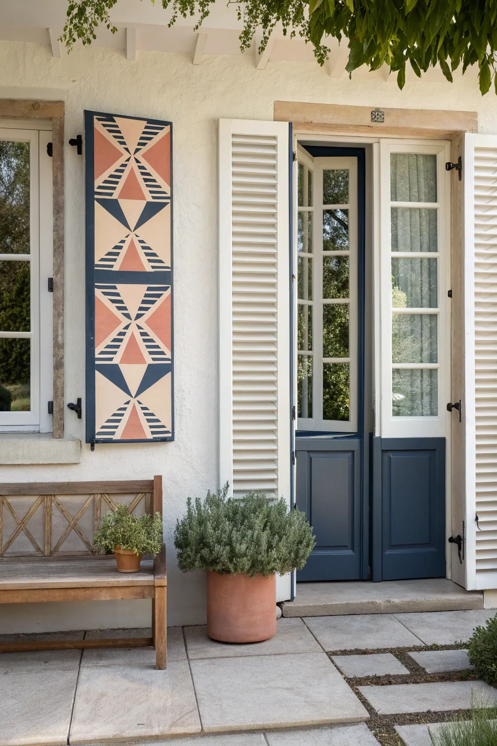 Geometric patterns on shutters can add a modern twist. They’re perfect for those who want a contemporary touch to their home. 🔷 #ModernTwist #GeometricStyle