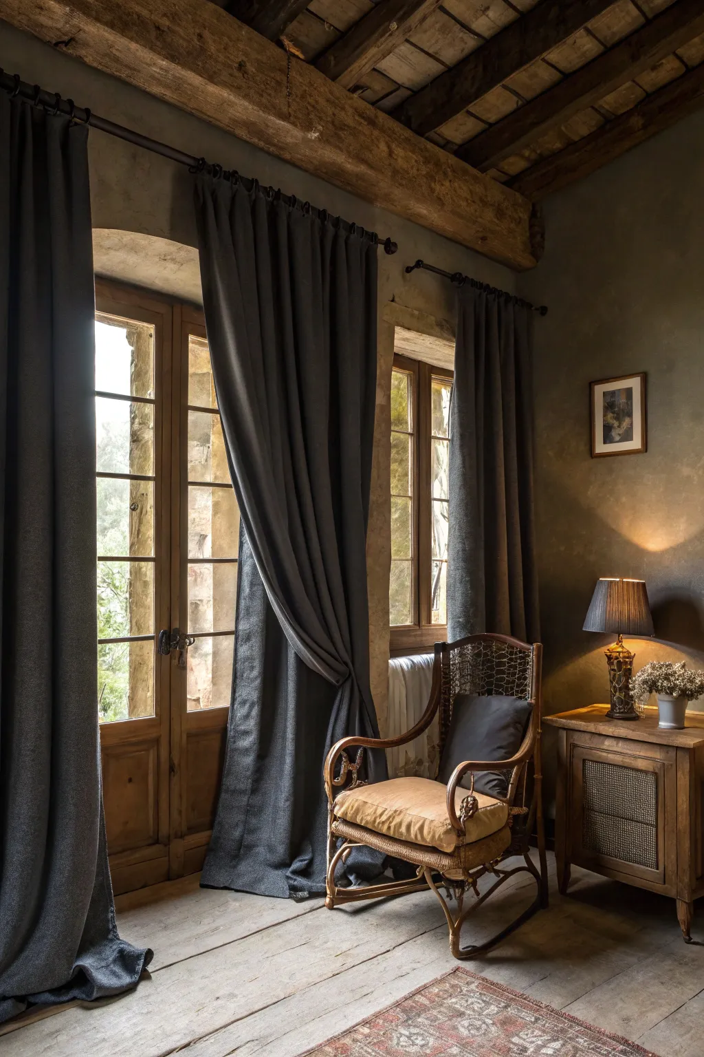 - Rustic Linen Blend Drapes: Opt for rustic linen blend drapes to add timeless charm and softness to any room.