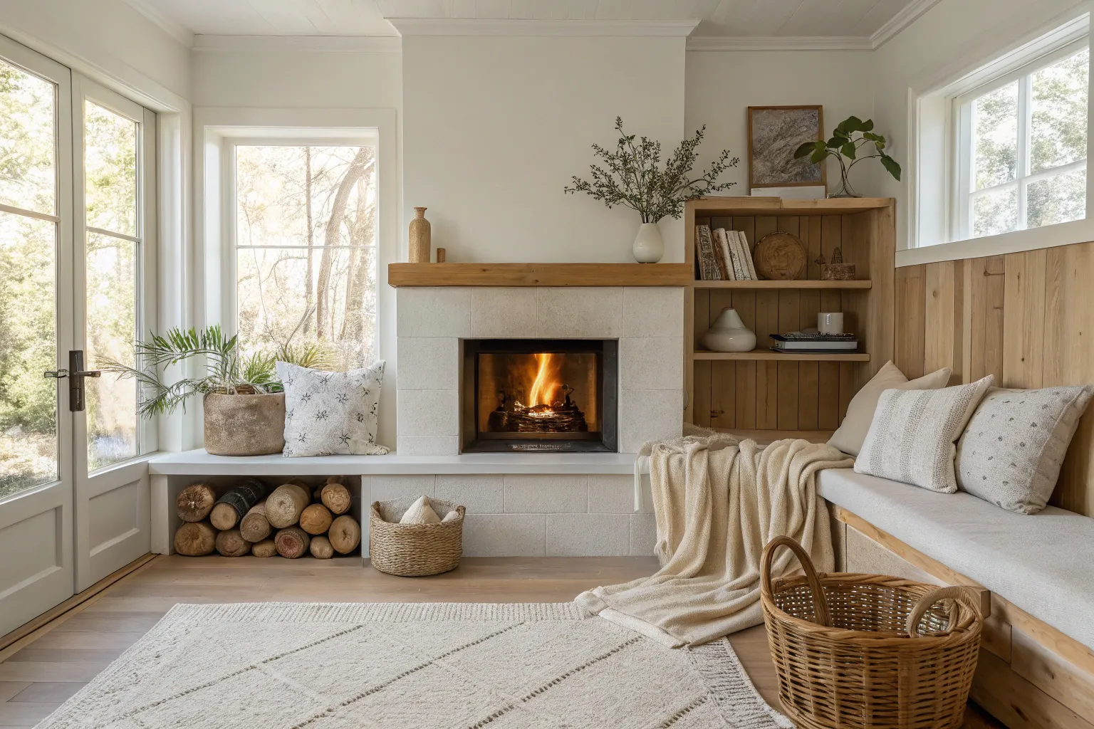 • Woven Storage Baskets: Optimize your hearth seating by adding woven storage baskets for a tidy and stylish look.