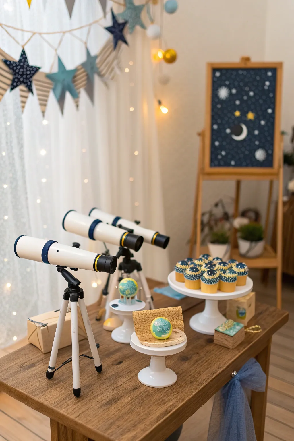 Send guests home with space-themed party favors like mini telescopes or starry night kits. These thoughtful gifts always leave a lasting impression.