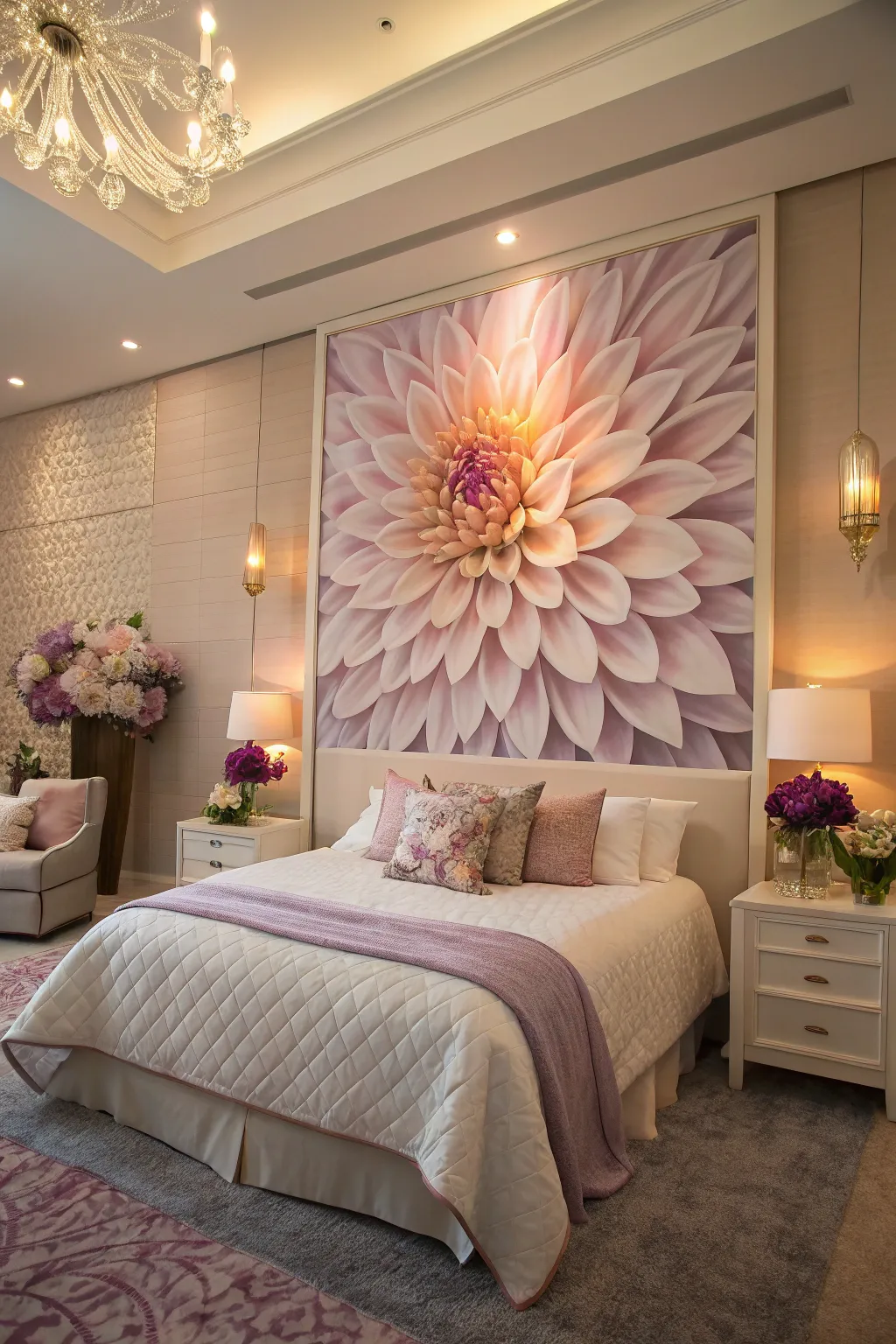- Large Floral Print Bedroom Wallpaper: Transform your space with vibrant floral patterns for a stunning bedroom centerpiece.