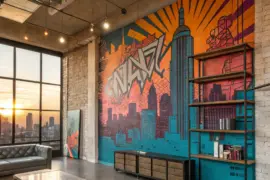 A colorful ombré wall offers a bold gradient effect with flowers transitioning in hues. This style adds a dynamic and artistic flair to any space.