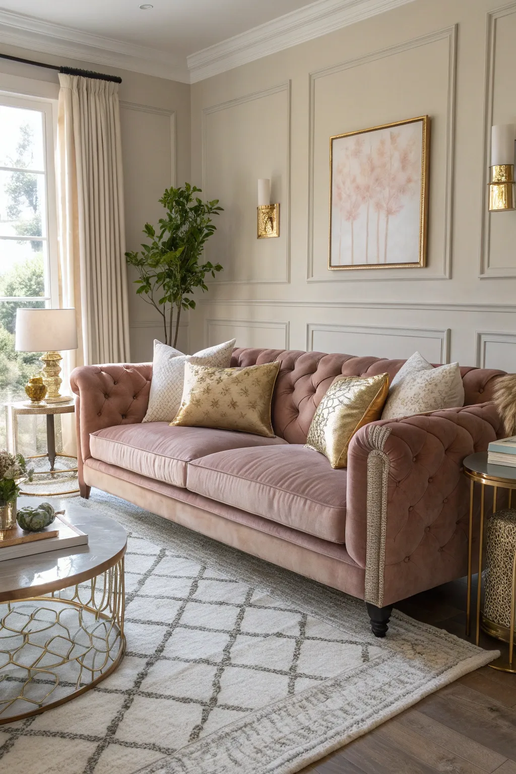 Incorporating metallics like gold or silver in furniture and decor highlights the glam aspect. In my projects, I often use these accents to add a sophisticated sparkle.