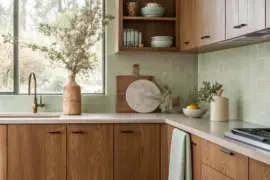 - Wood Countertop: Enhance your kitchen’s warmth with a rich wood countertop, adding natural texture and warmth.
