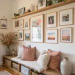 - Wooden Floating Shelves: Enhance your accent wall with stylish wooden floating shelves for extra decor space and elegance.