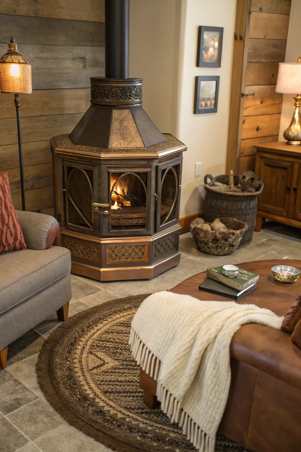 • Geometric Area Rug: Add warmth and style with a geometric patterned area rug, enhancing your hearth’s visual appeal.