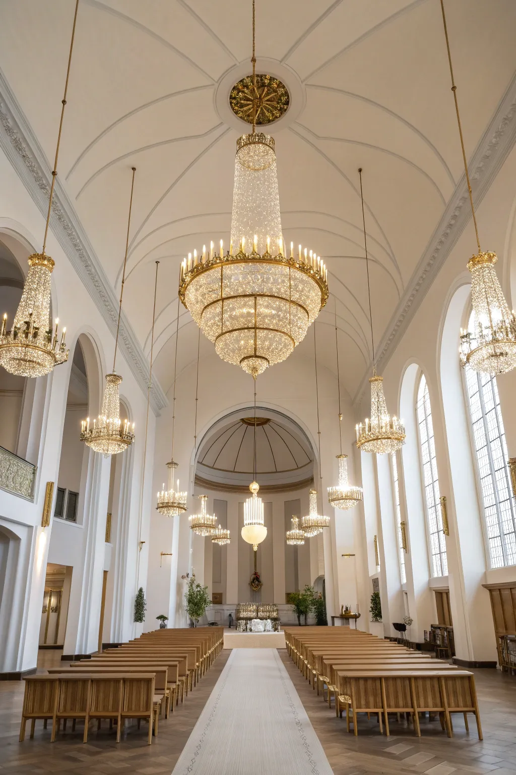 Consider layered chandeliers for a multi-dimensional look. These create depth and intrigue, perfect for high ceilings that need a little extra drama.