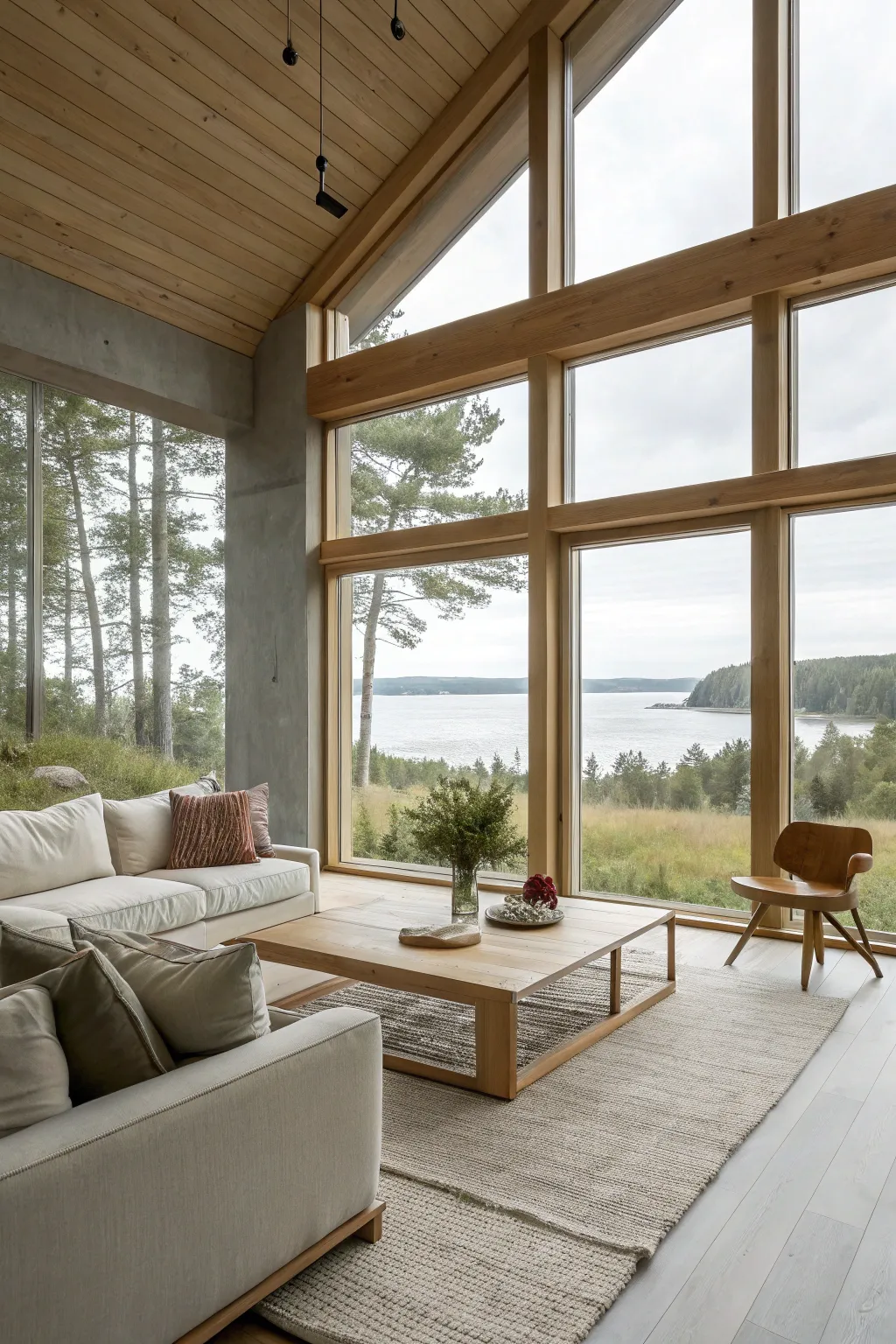 - Contemporary Floor Lamp: Enhance your living area with stylish lighting that complements your dramatic window-wall design.