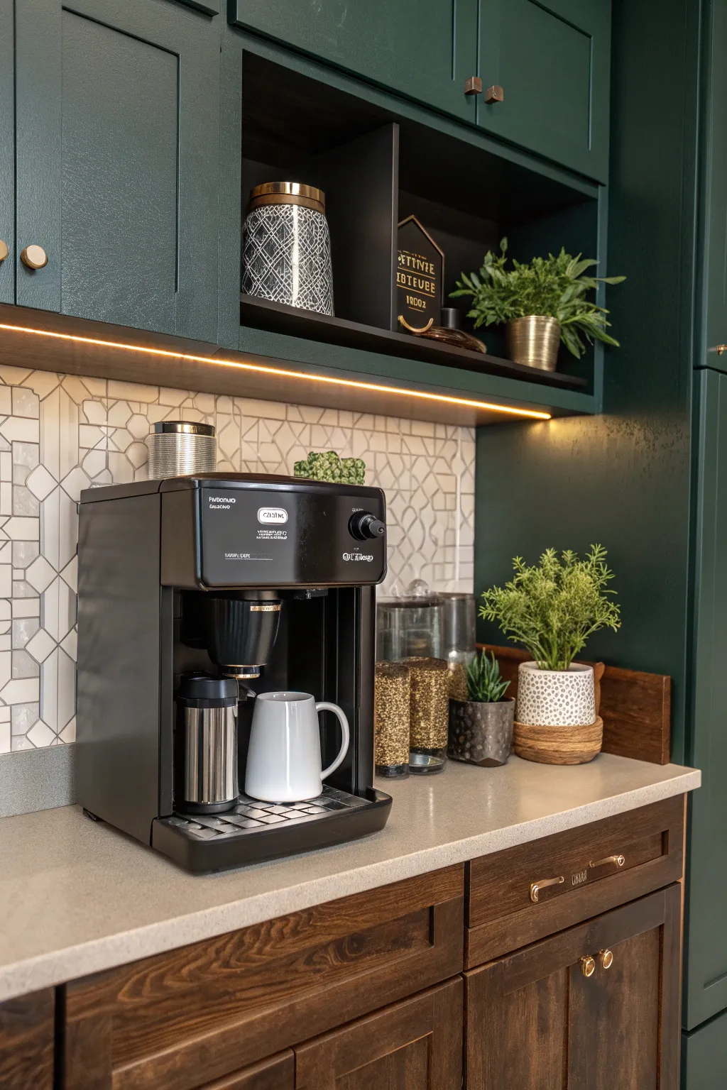 - Under-Cabinet LED Light Strips: Illuminate your beverage center with soft LED strips for a modern, inviting glow.