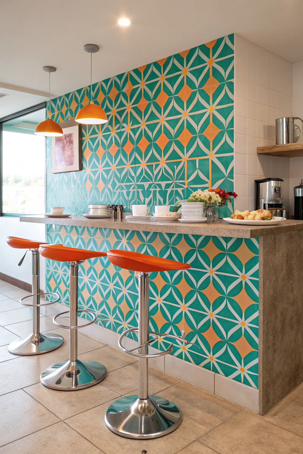 Incorporate geometric patterns into your breakfast bar design for a modern twist. The shapes add dynamic interest and can be echoed in other kitchen elements.