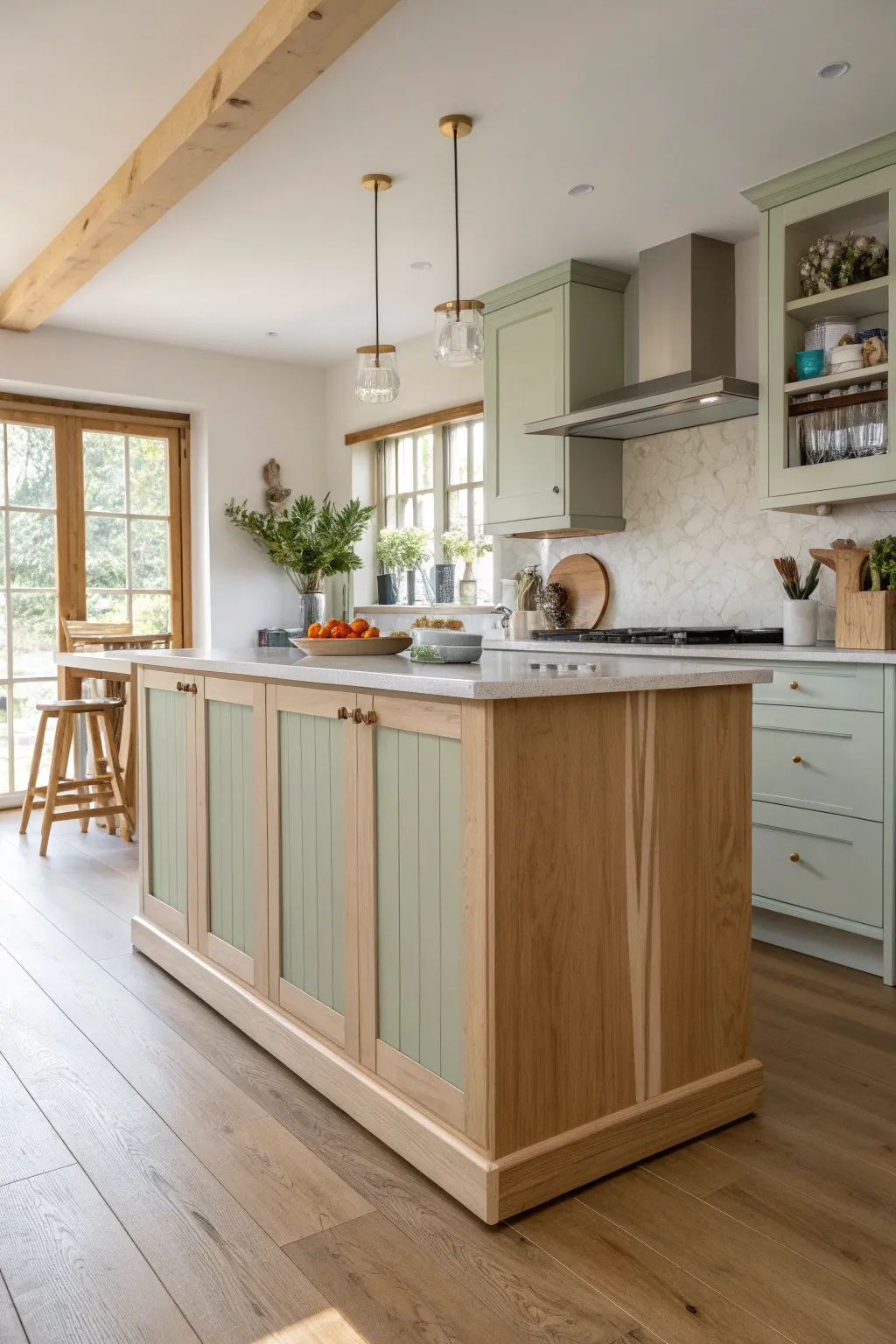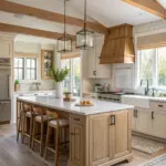 Blend traditional and modern styles by using sleek molding with classic cabinet designs. It’s a fusion I adore for its ability to bring together the best of both worlds, creating a kitchen that feels both fresh and familiar.