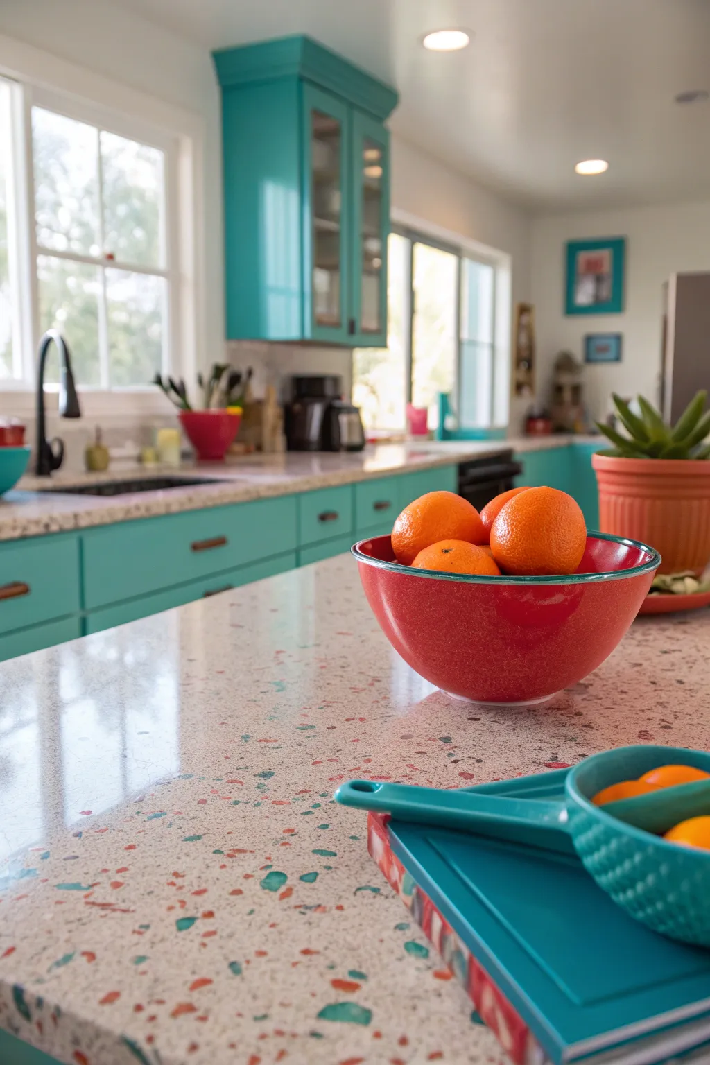 Ceramic tiles offer a colorful and creative option for countertops. They’re heat-resistant and allow you to play with patterns and designs.