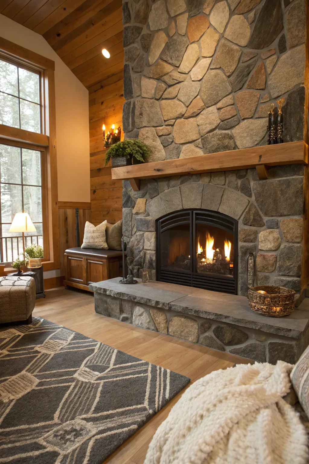 Choose a mantel that complements your stone, whether in wood or a contrasting stone. A well-chosen mantel adds both functionality and aesthetic charm.