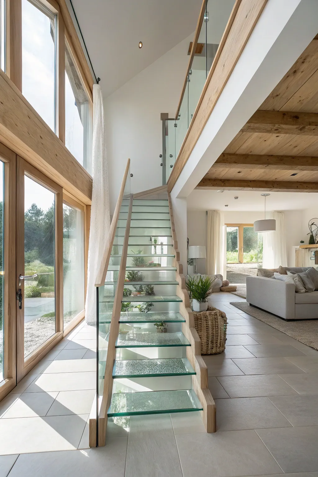 Glass steps offer a transparent, modern touch that enhances natural light flow. They’re perfect for lofts aiming for a light-filled, airy atmosphere.