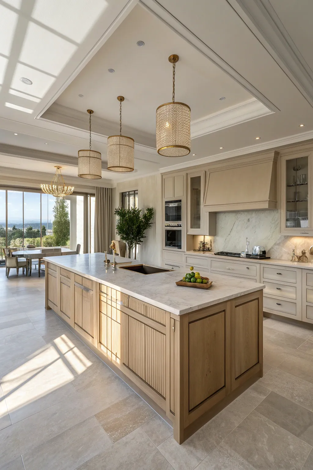 A spacious open layout with double islands ensures a natural flow between cooking, dining, and living areas. This design philosophy creates an inviting atmosphere, much like an open invitation to linger and enjoy.