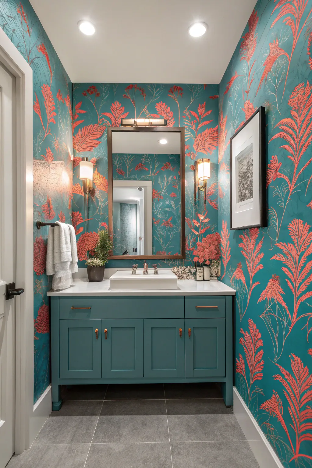 • Bold Floral Wallpaper: Transform your bathroom with vibrant patterns that add personality and excitement instantly.