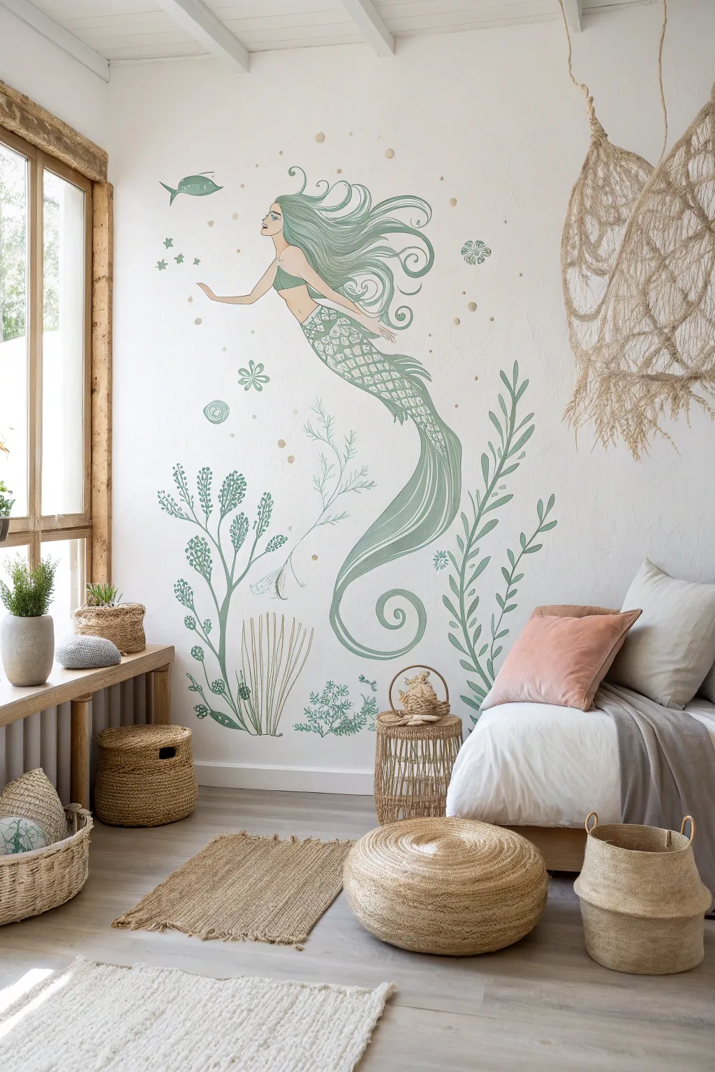Use mermaid wall decals for a quick and impactful transformation. In my projects, they offer a playful option that doesn’t require permanent changes.