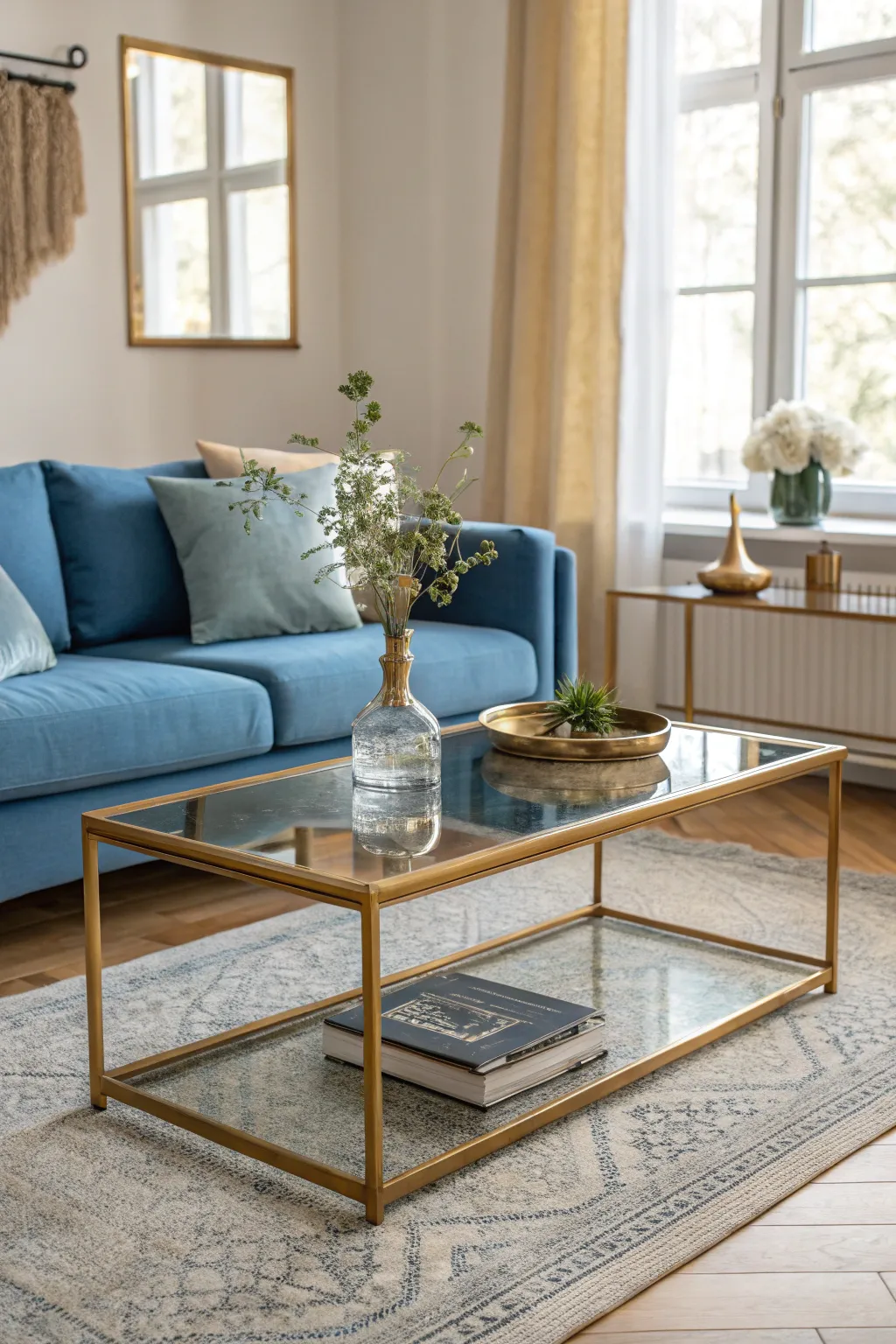 - Gold and Glass Side Table: Elevate your space with a chic gold and glass side table beside your seating area.