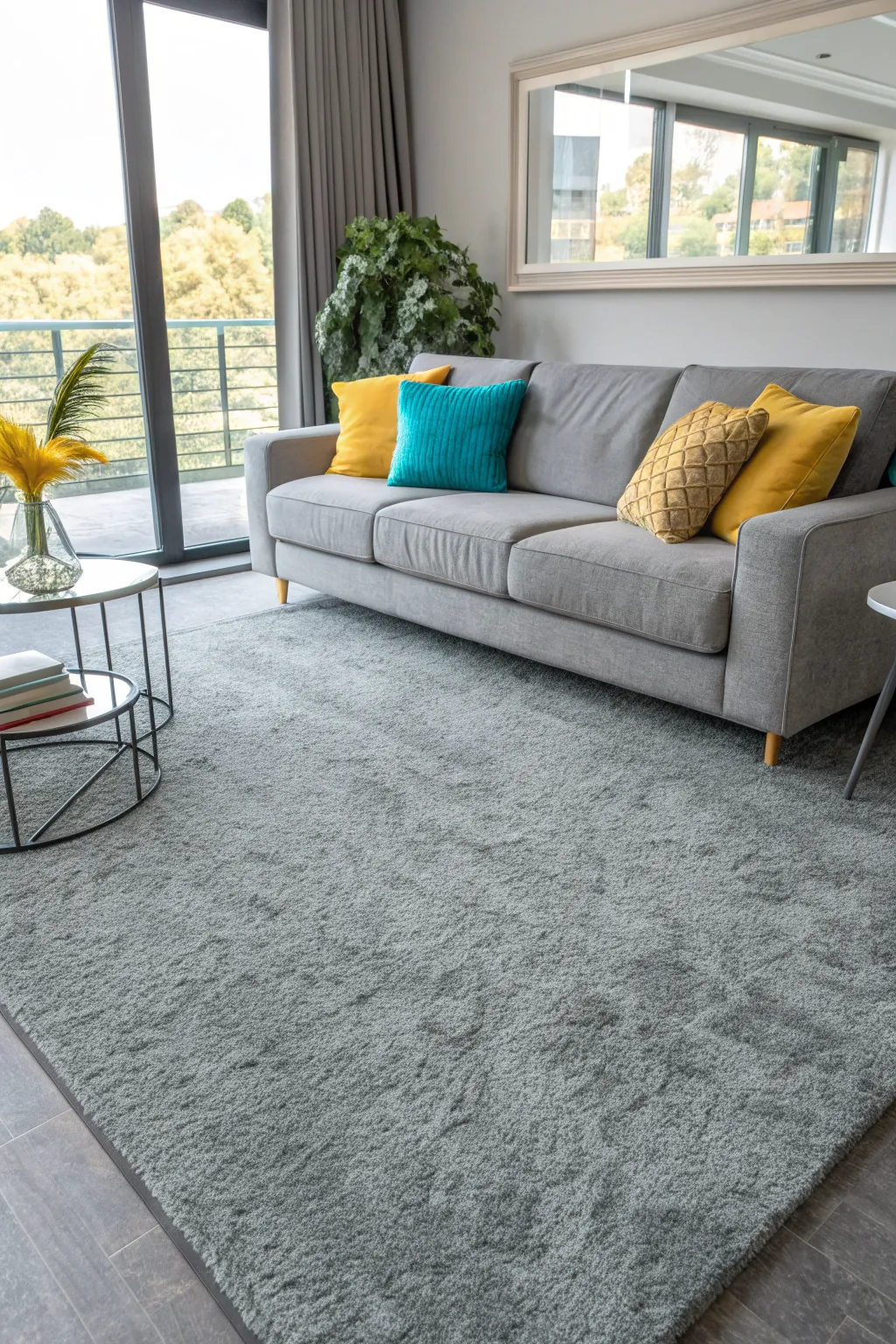 - Cozy Gray Shag Area Rug: Enhance your living room with a plush, soft gray shag rug for ultimate comfort and style.