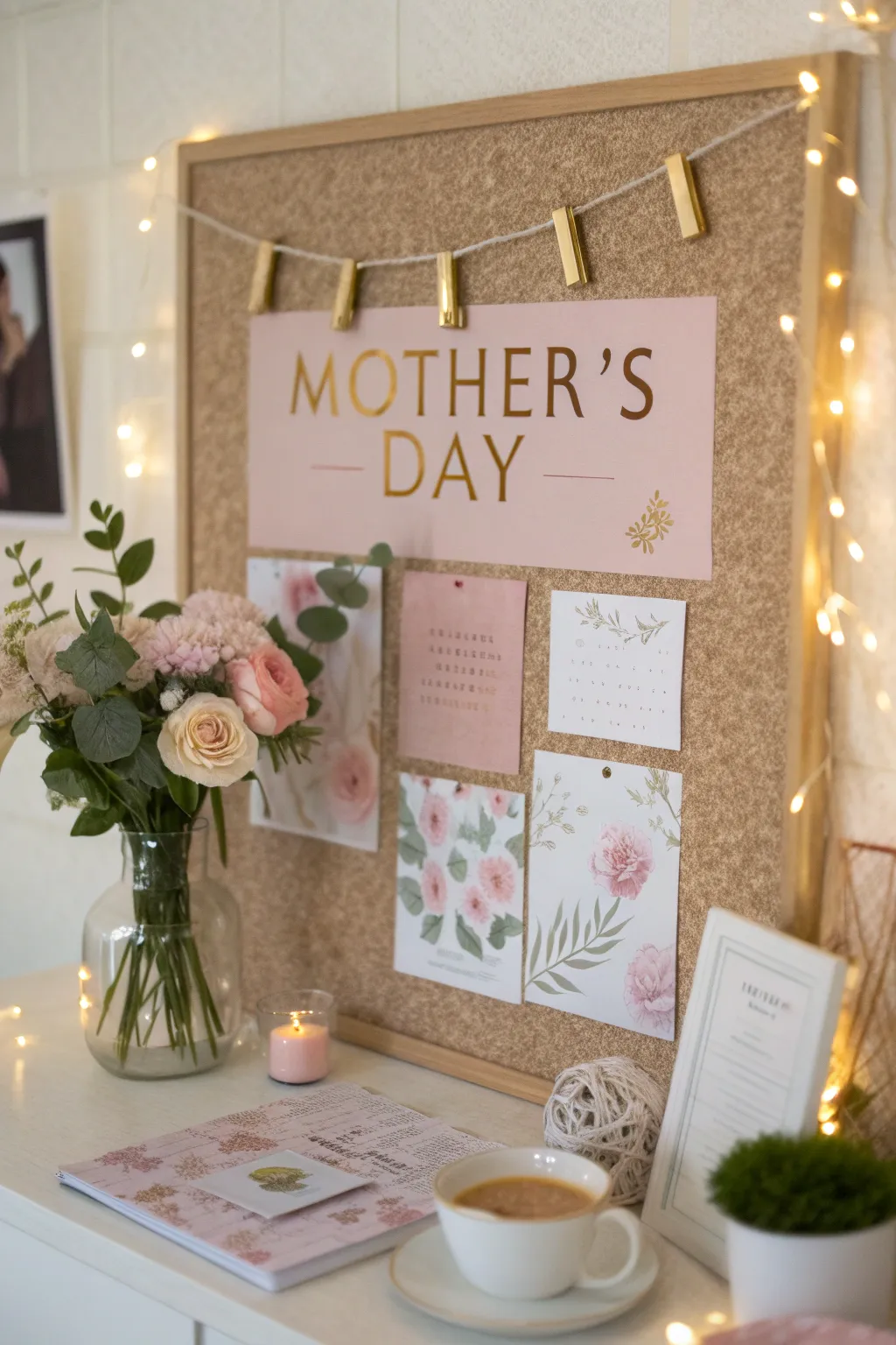 Turn your bulletin board into an interactive photo gallery showcasing cherished family photos. This adds a personal touch and always brings a smile to everyone’s face. 📸 #FamilyLove #MothersDayMagic