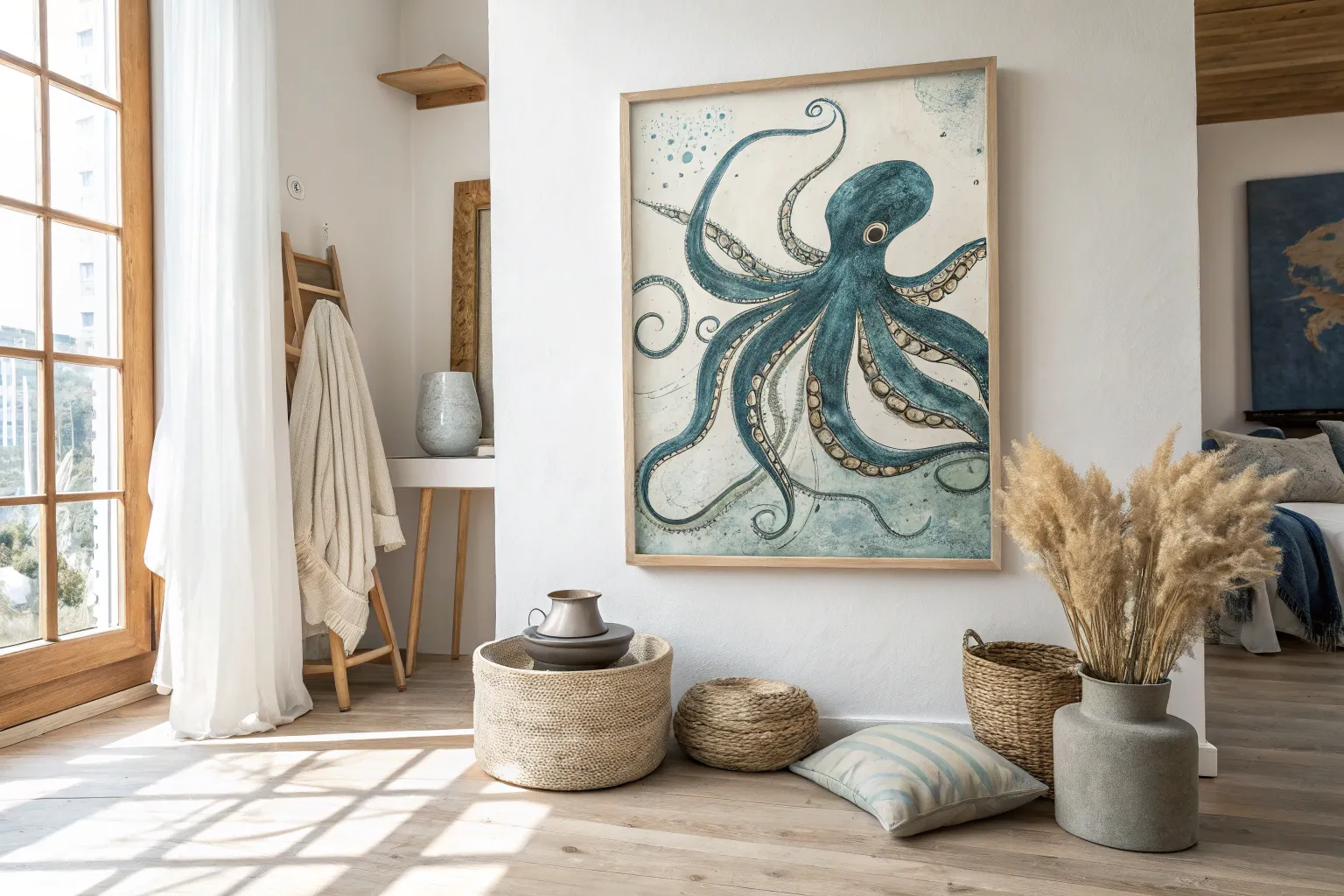 - Framed Octopus Art Print: Enhance your space with a framed octopus print symbolizing wisdom and mystery.