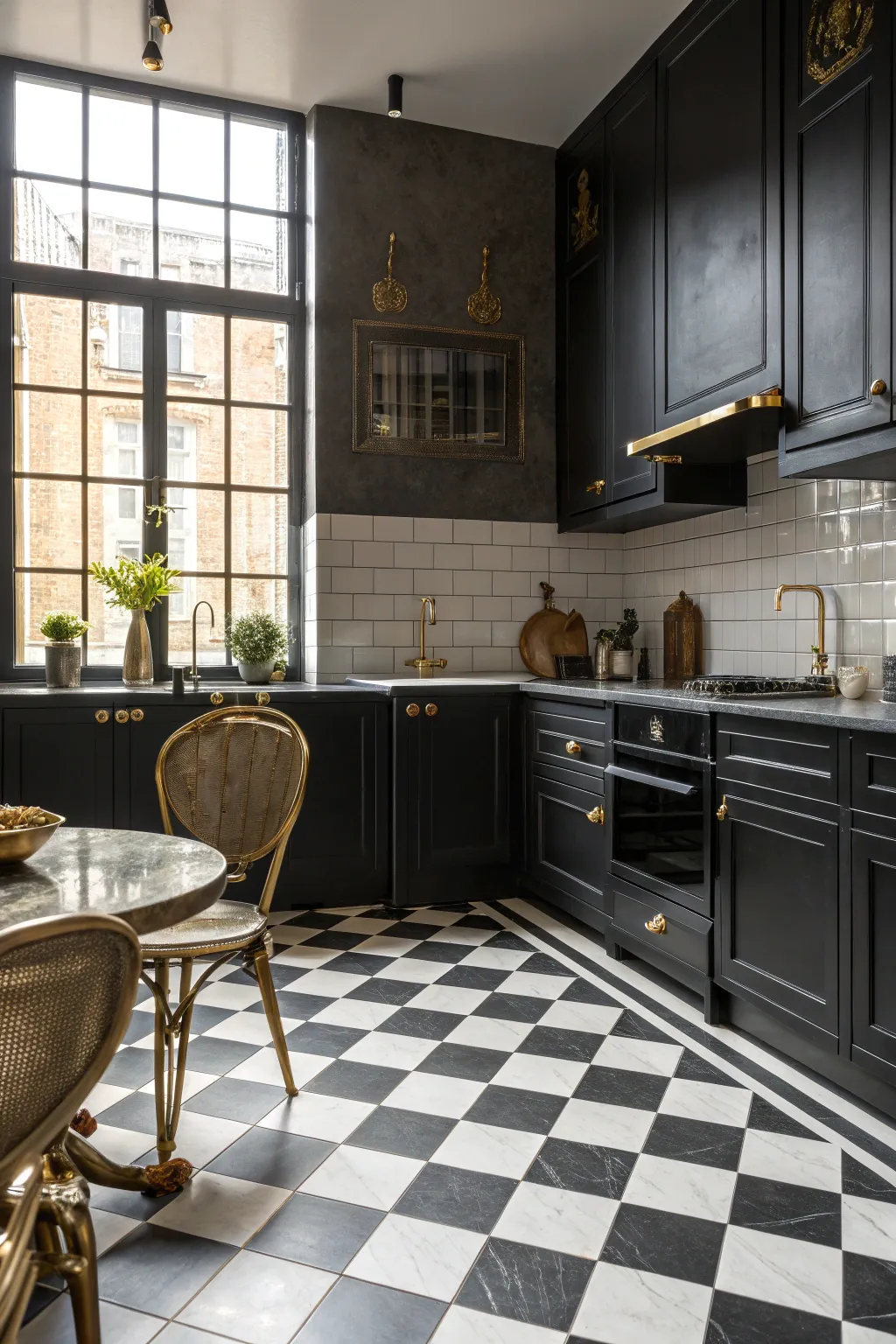 - Ceramic Checkerboard Floor Tiles: Add elegance to your kitchen with durable ceramic tiles, enhancing space with a timeless pattern.