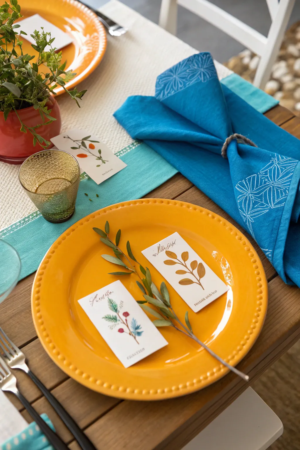 Add a personal touch with thematic place cards. I love crafting simple cards using natural elements like small branches or leaves.