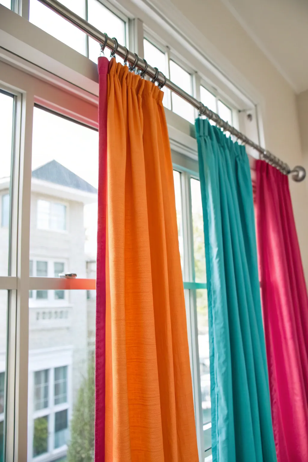 Go bold with color block curtains for a fun and modern look. In my daughter’s room, they add a lively, youthful energy.
