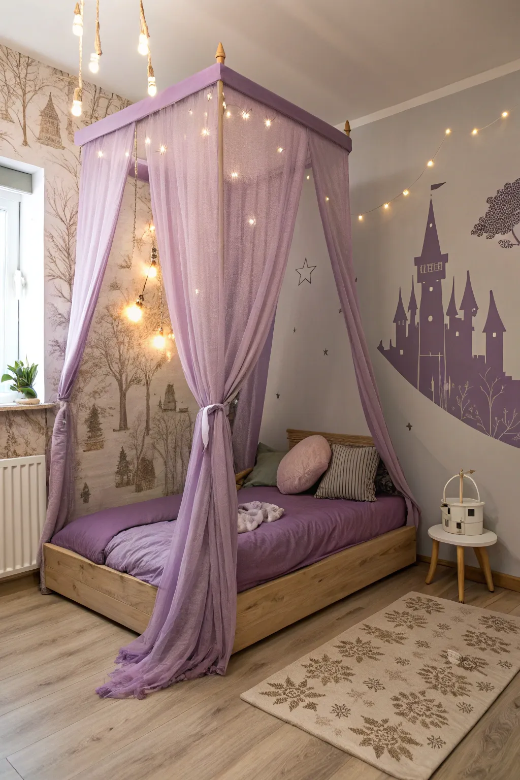 - Purple Canopy Bed Curtains: Transform her bed into a fairy tale haven with these enchanting purple canopy curtains.